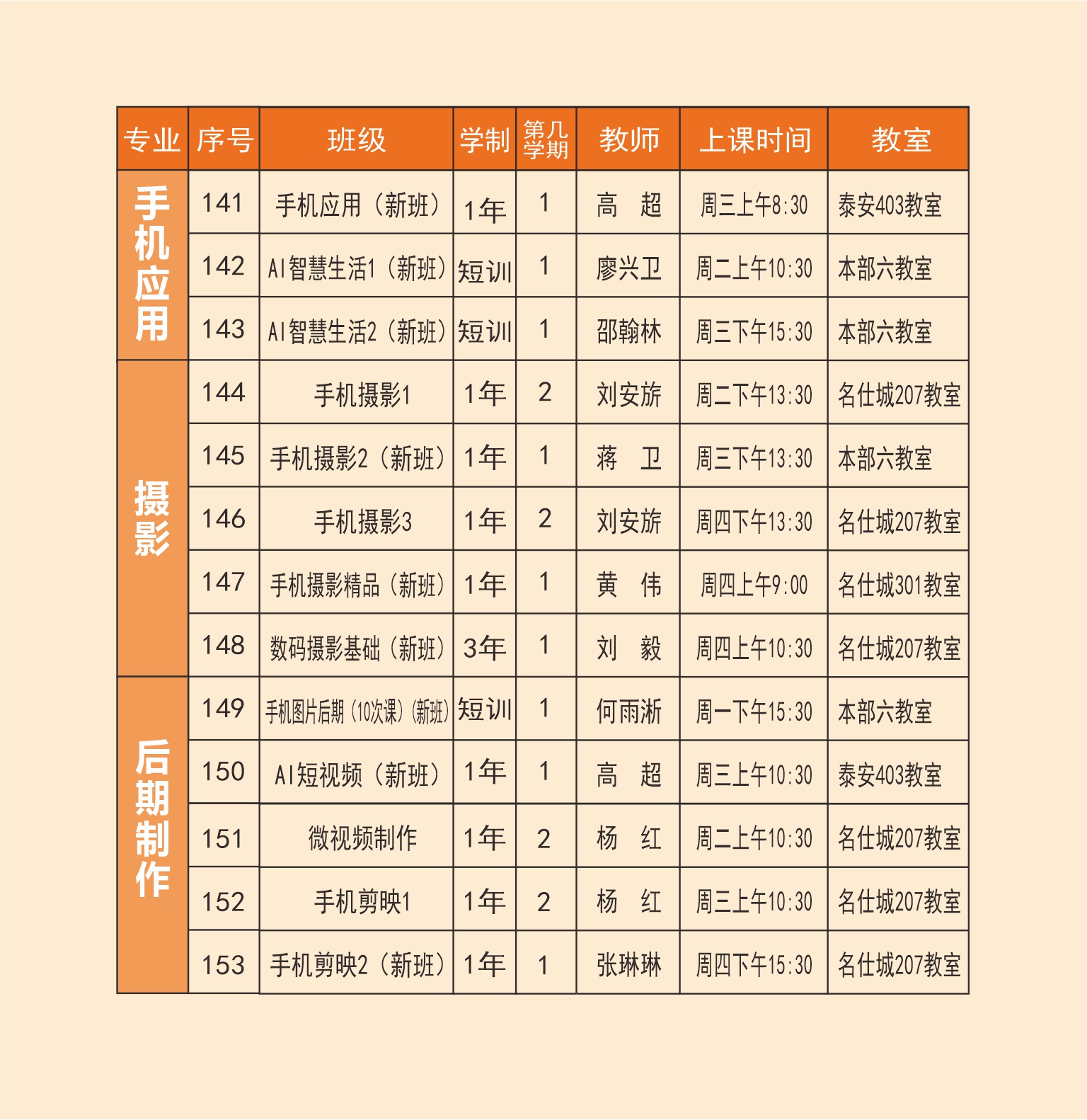 新老学员按各班级开课时间到校上课,不再另行通知。