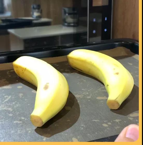2.烤箱提前预热至上下火180℃,将两根香蕉放入烤箱,烤制20分钟;