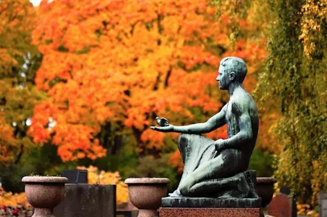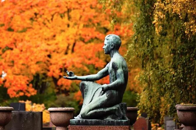如果将雕像放在画面一侧,另一侧有了延展,就让画面有了呼吸感,雕像手中的小鸟都像是要飞走了。