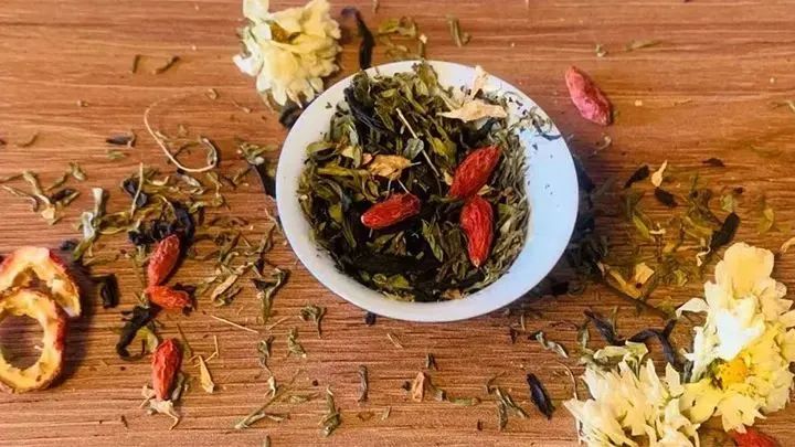 菊花绿茶:杭菊花、绿茶各10克,用500毫升开水冲泡,随饮随用,有清暑明目、生津止渴、消炎解毒作用。