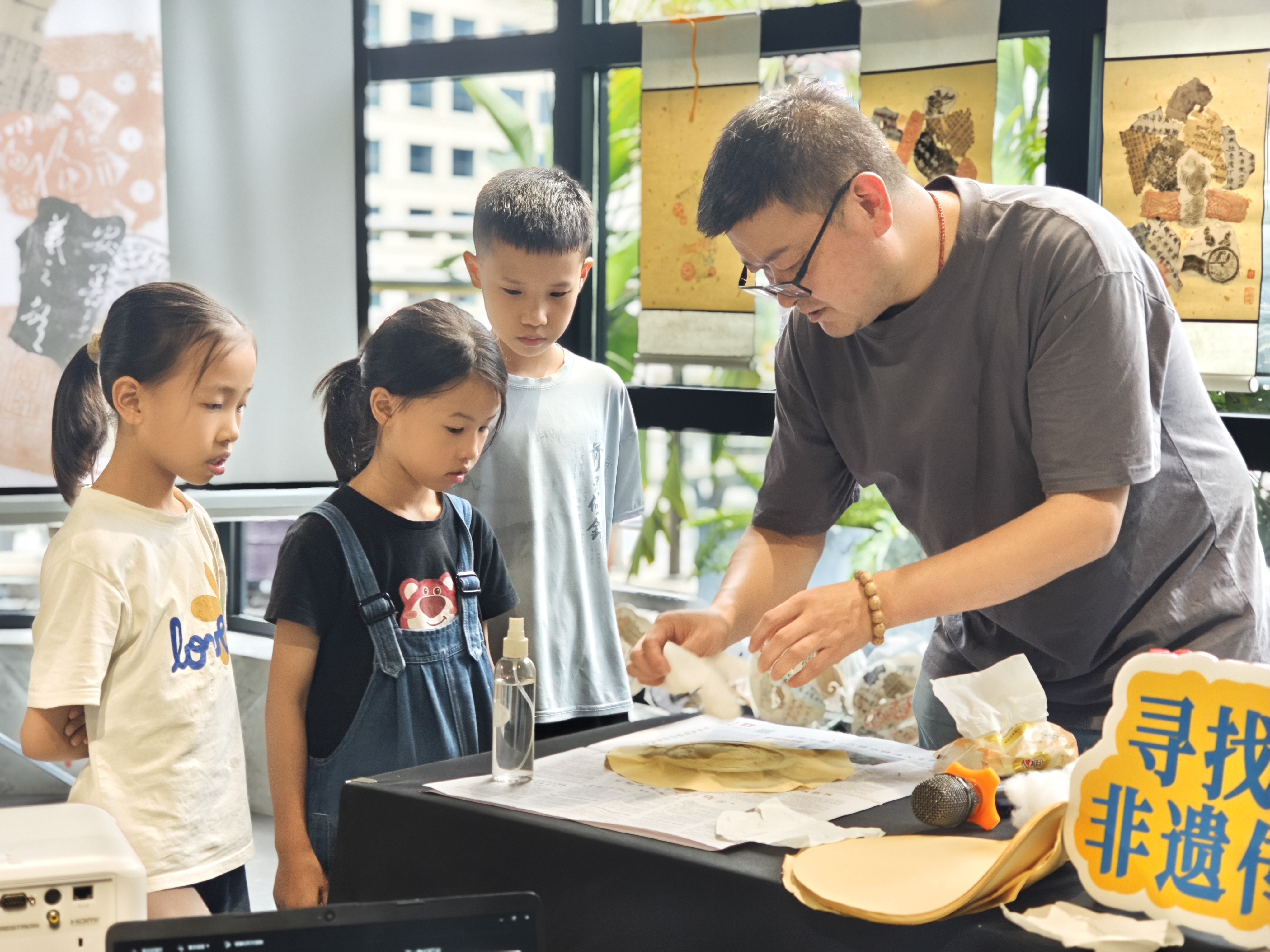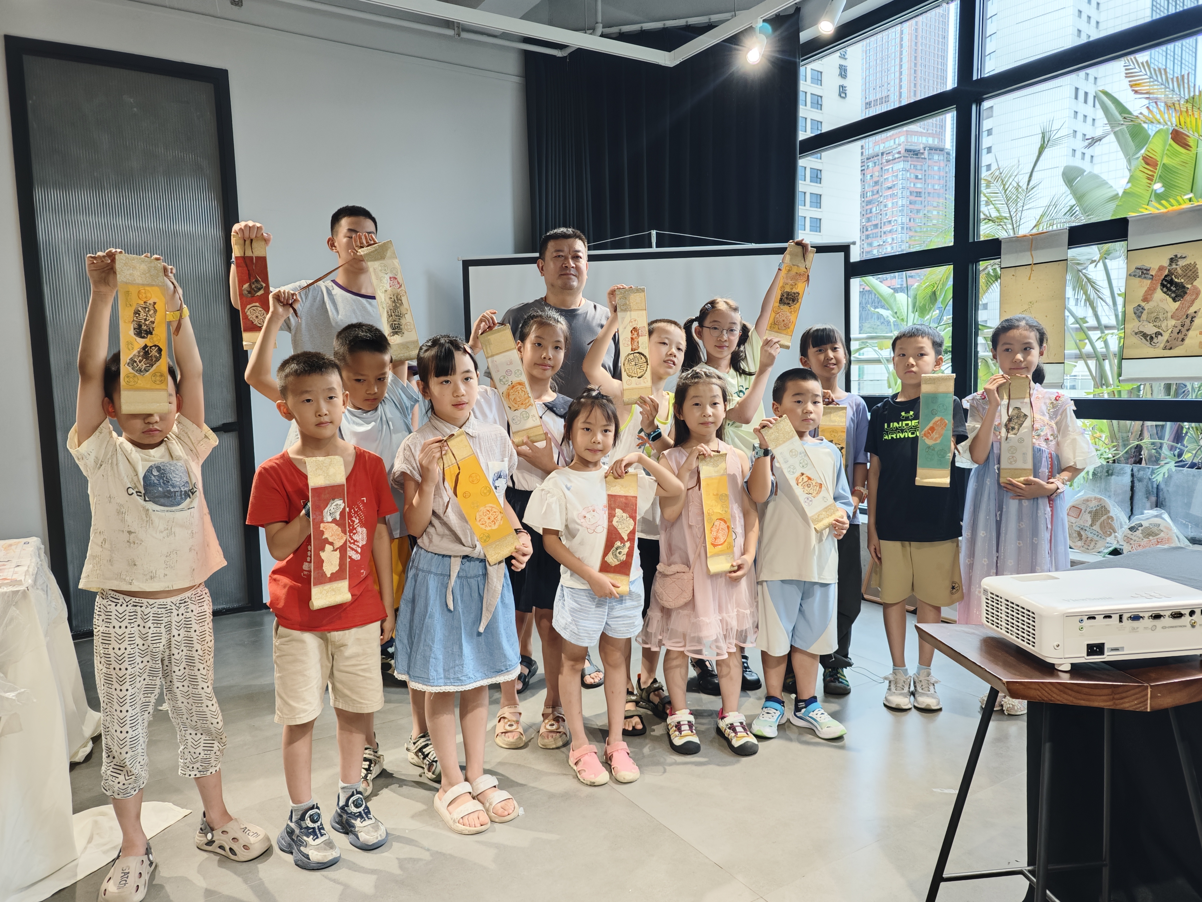 8月7日至9日,区非遗协会与重百联合举办“非遗造物季·第三届寻找小小非遗传承人”系列活动。我校书画教师、巴渝锦灰堆非遗传承人张翕,担任“巴渝锦灰堆”非遗体验课讲师。张老师向孩子们生动讲解了巴渝锦灰堆的历史与艺术价值,并细致指导了选材、构图及古旧质感绘制等技艺。在张老师的引导下,孩子们积极参与体验,随着一件件作品出炉,大家对这门独特的非遗技艺及其文化魅力都有了更深的理解和热爱。