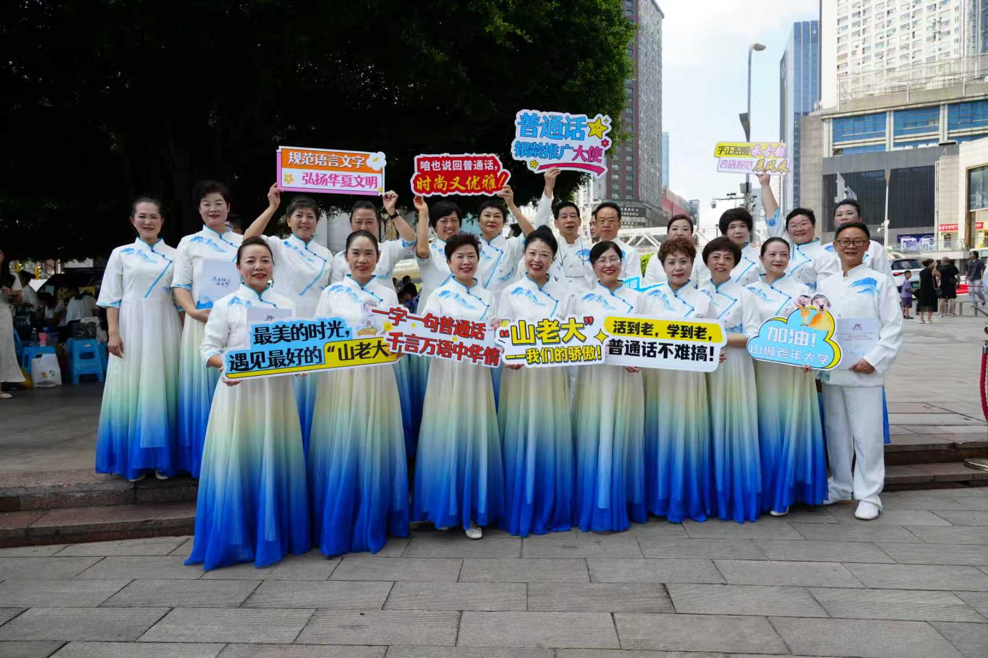 9月14日,重庆市第28届全国推广普通话宣传周活动在江北区商圈启动,我校学员在启动仪式中登台朗诵《书润风华》,赢得现场观众的热烈掌声,充分展示了普通话推广工作在老年群体中的积极成效,展现了新时代老年人的新风貌。