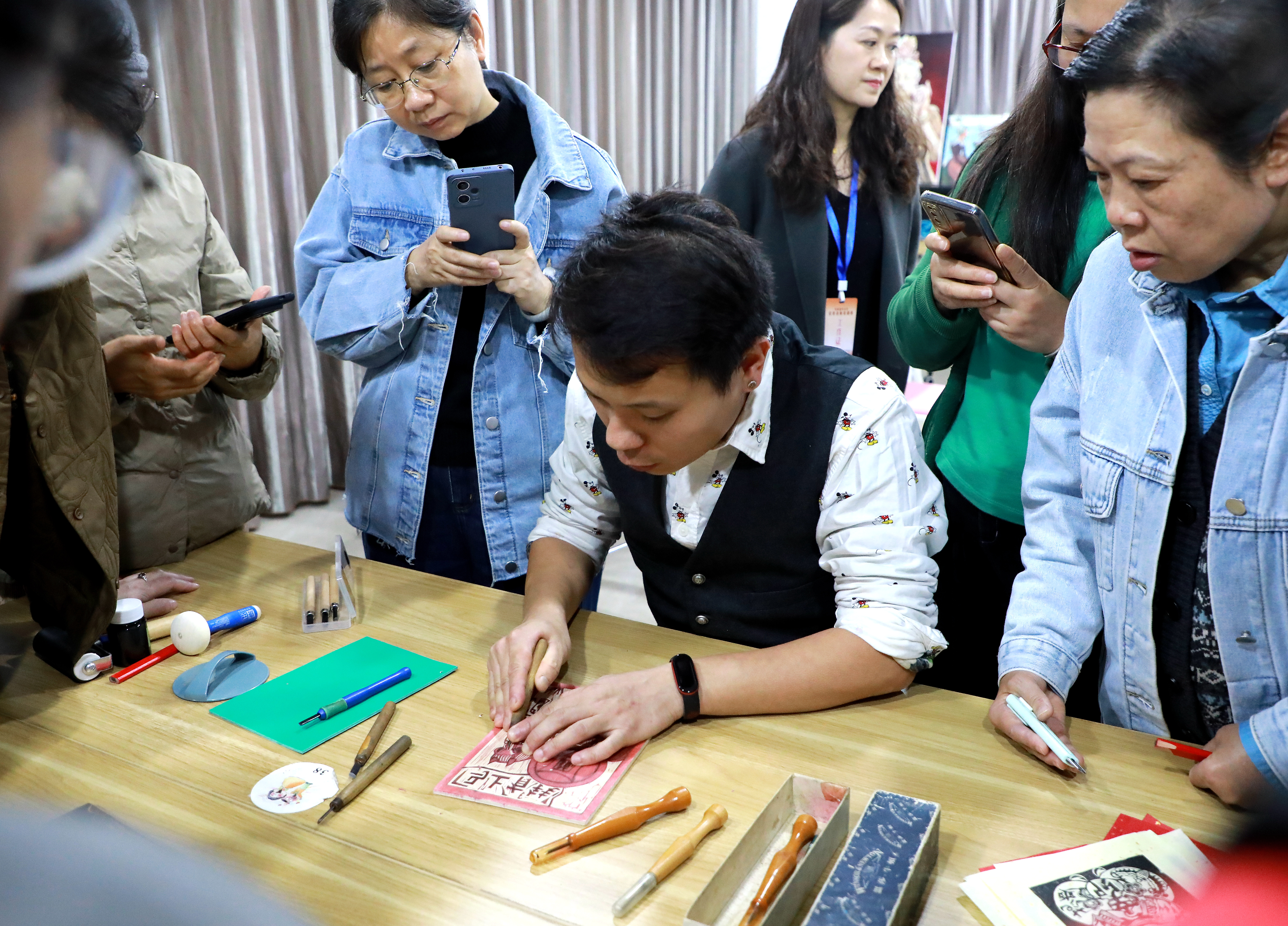 丰富多元的课程内容引发了参观者的广泛兴趣,不少学员在非遗作品展示区前驻足交流,与授课教师及学员现场互动,共同探讨课程设计思路与教学方法的创新可能。