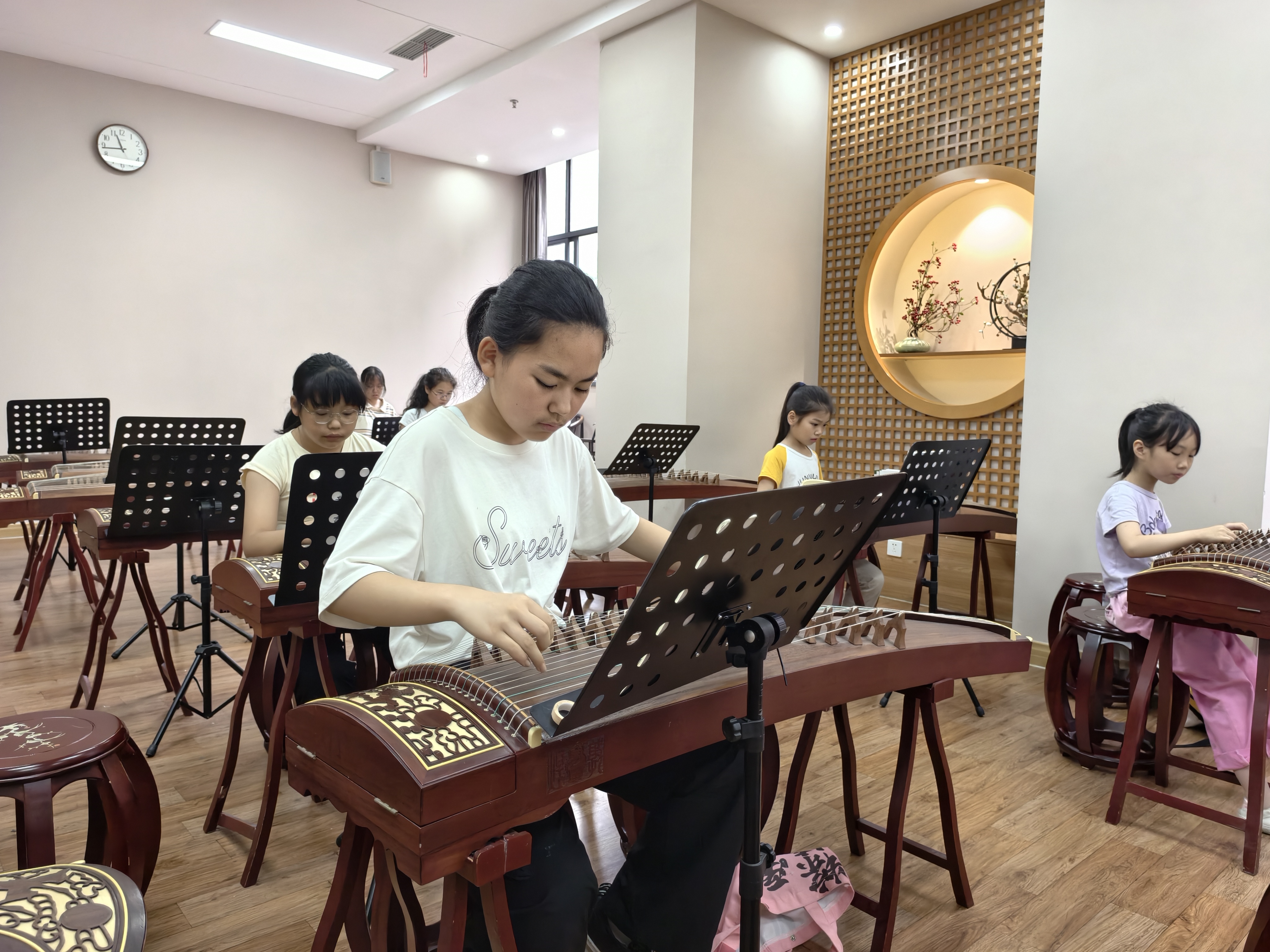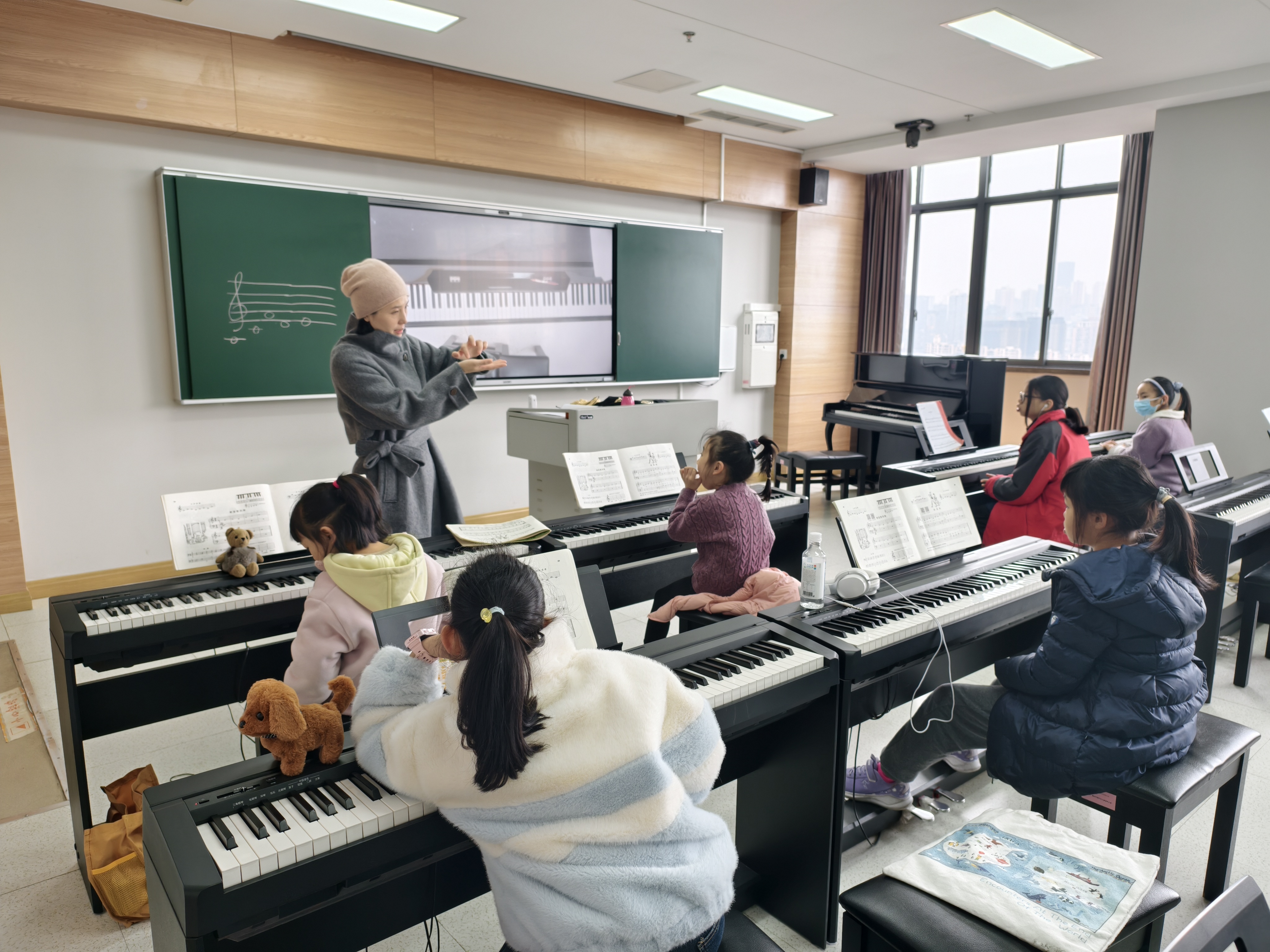 古筝班上,孩子们从识谱、认弦开始,在反复的练习中体会民乐的韵味。琴声在琴弦间缓缓流淌,他们不仅掌握了弹奏技巧,更感受到了传统文化的美好;舞蹈教室里,汗水与笑容交织,孩子们认真训练基本功,生动演绎新疆舞的活泼与古典舞的优雅,每一个动作都凝聚着坚持与热爱;钢琴班的小学员们身姿端正,指尖在琴键上跳跃,从单音到曲目,从生涩到流畅,音符中洋溢着快乐与专注;美术课堂则是创意的乐园,孩子们用画笔描绘想象,用色彩表达情感,在创作中学会观察世界、表达自我。
