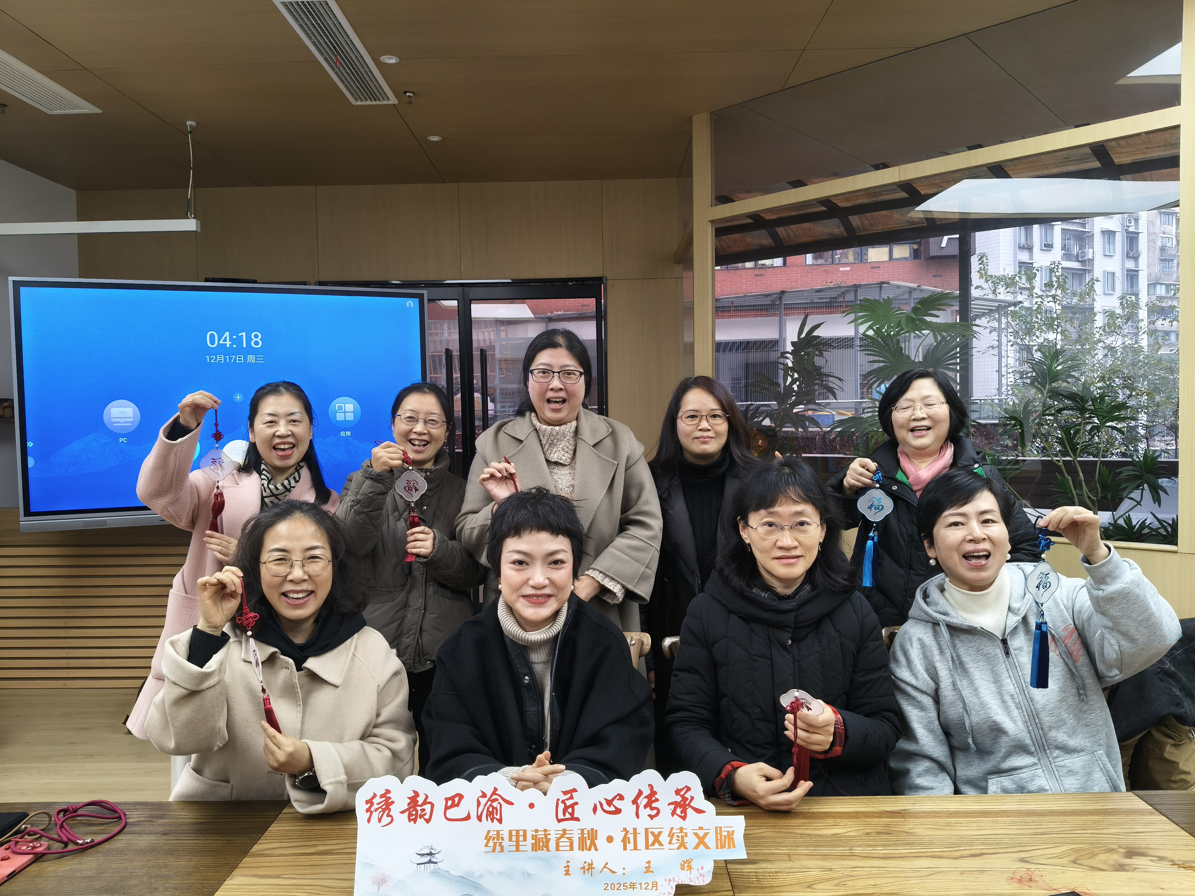 从盛夏蝉鸣到寒冬暖阳,从稚气孩童到银发长者,历时半年的“绣韵巴渝·匠心传承”蜀绣传承培训班,在渝中区山城老年大学名仕城校区的非遗培训基地温情落幕。五期课程、二十节手把手授课、热爱老手艺的社区居民、青少年学生、退休老人,以针为笔、以线为墨,在绸缎上绣出巴渝烟火、生活暖意,让国家级非遗蜀绣在母城渝中“活”了起来。