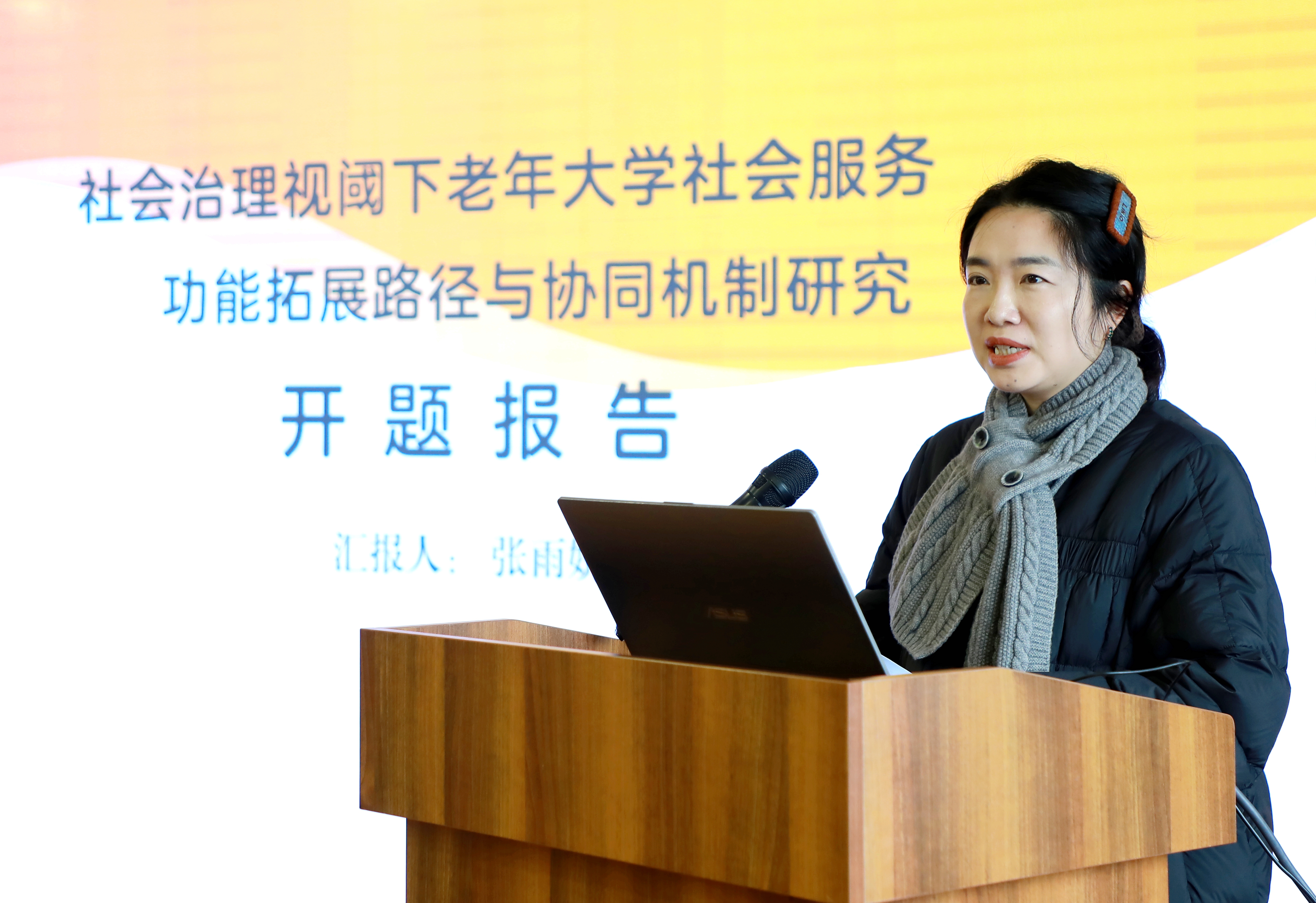 听取汇报后,专家组进行了精准提问和深度质询。课题组结合前期思考,就“治理参与型老年大学”的预设样态、实施路径的可行性、协同机制构建的系统性框架等核心研究问题,进行了答辩。
