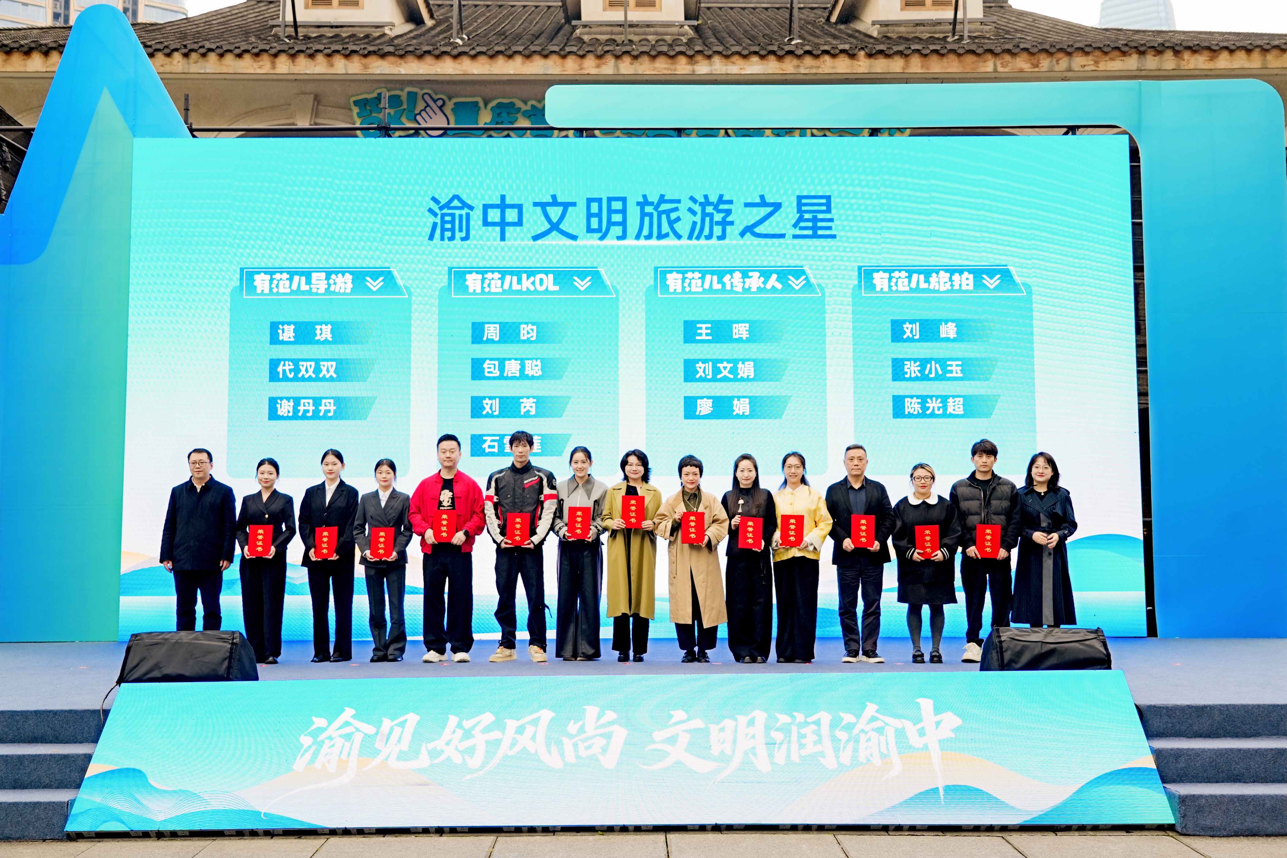 3月24日,渝中区“渝见好风尚”城市文明建设主题活动暨2026年“渝中行业文明之星——文旅行业”发布仪式在十八梯凤凰广场举行,我校青年教师廖娟荣获“文明旅游之星——有范儿传承人”。